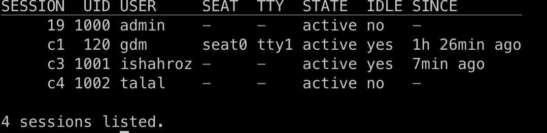 sudo loginctl list-sessions