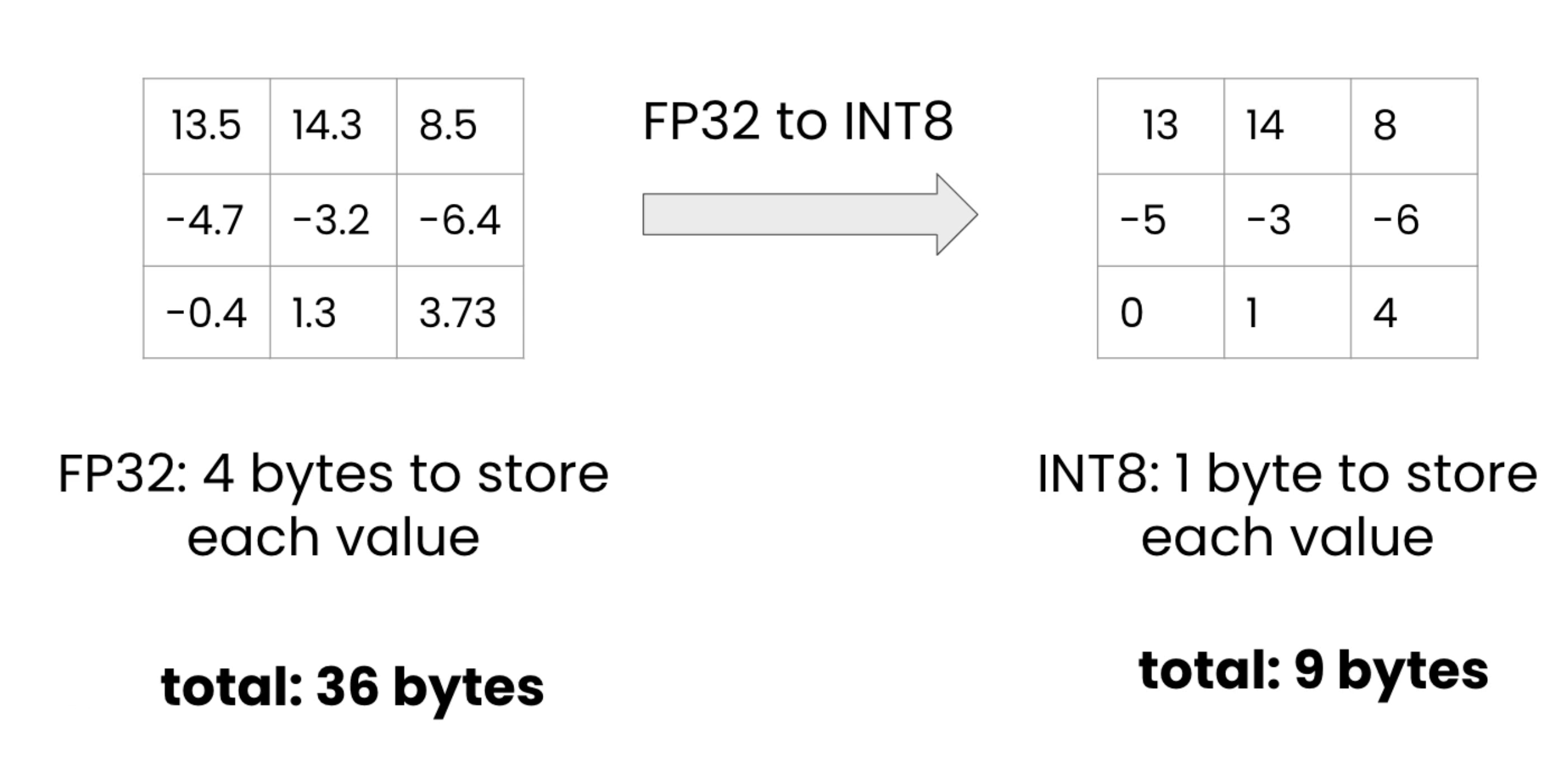 Some quantization methods can further reduce the precision to integer representations, like int8 or int4. You can read more about data types for ML on my blogpost.